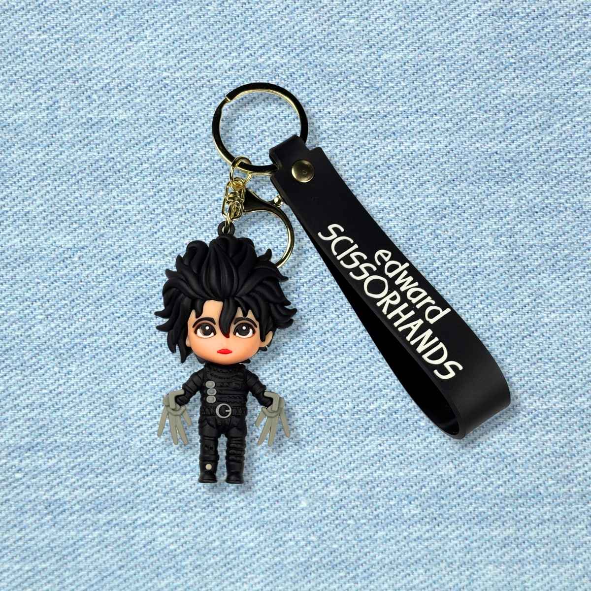 Lleva contigo la magia y melancolía de un clásico con este llavero de goma El joven Manos de Tijera, inspirado en el inolvidable personaje del cine. Fabricado en goma flexible y resistente, con detalles que recrean su icónico traje negro y sus manos en forma de tijeras. Ideal para mochilas, llaves o estuches, este accesorio combina arte, nostalgia y estilo gótico en una sola pieza.