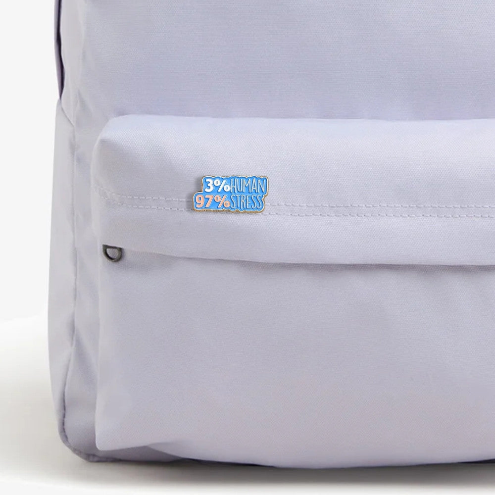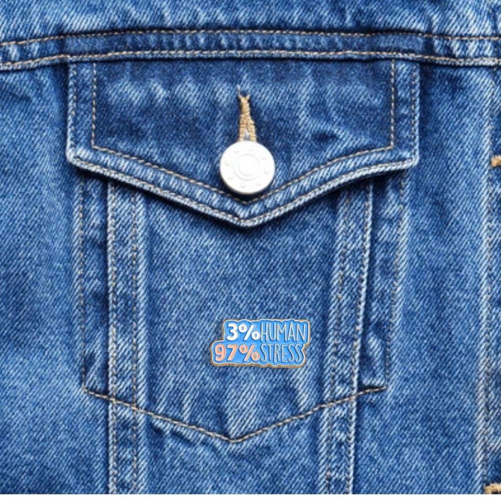 Este pin 3% Human 97% Stress combina humor y estilo en un diseño único. Ideal para mochilas, chaquetas o estuches, muestra tu lado sarcástico con un toque original. Fabricado con materiales resistentes y colores vibrantes, este accesorio es perfecto para quienes aman los detalles con actitud. Añade personalidad a tu look diario con este pin lleno de ironía.
