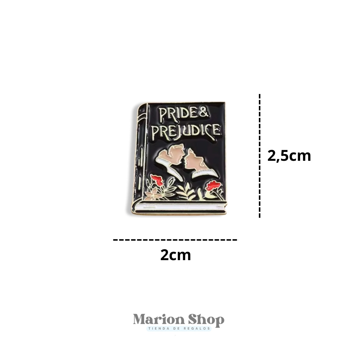 Celebra la elegancia de los clásicos con este pin metálico esmaltado “Orgullo y Prejuicio”, inspirado en la icónica novela de Jane Austen. Su diseño detallado representa un libro con relieves dorados, siluetas románticas y delicadas flores, ideal para quienes aman la literatura y los accesorios con estilo vintage. Perfecto para mochilas, chaquetas o coleccionistas de pines con historia.